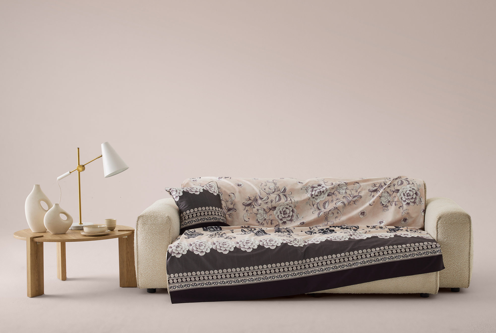 Aus reiner Baumwolle (57 Fäden pro cm²) hergestellt ist es in den Größen 180 x 270 cm, 270 x 270 cm sowie 350 x 270 cm erhältlich.