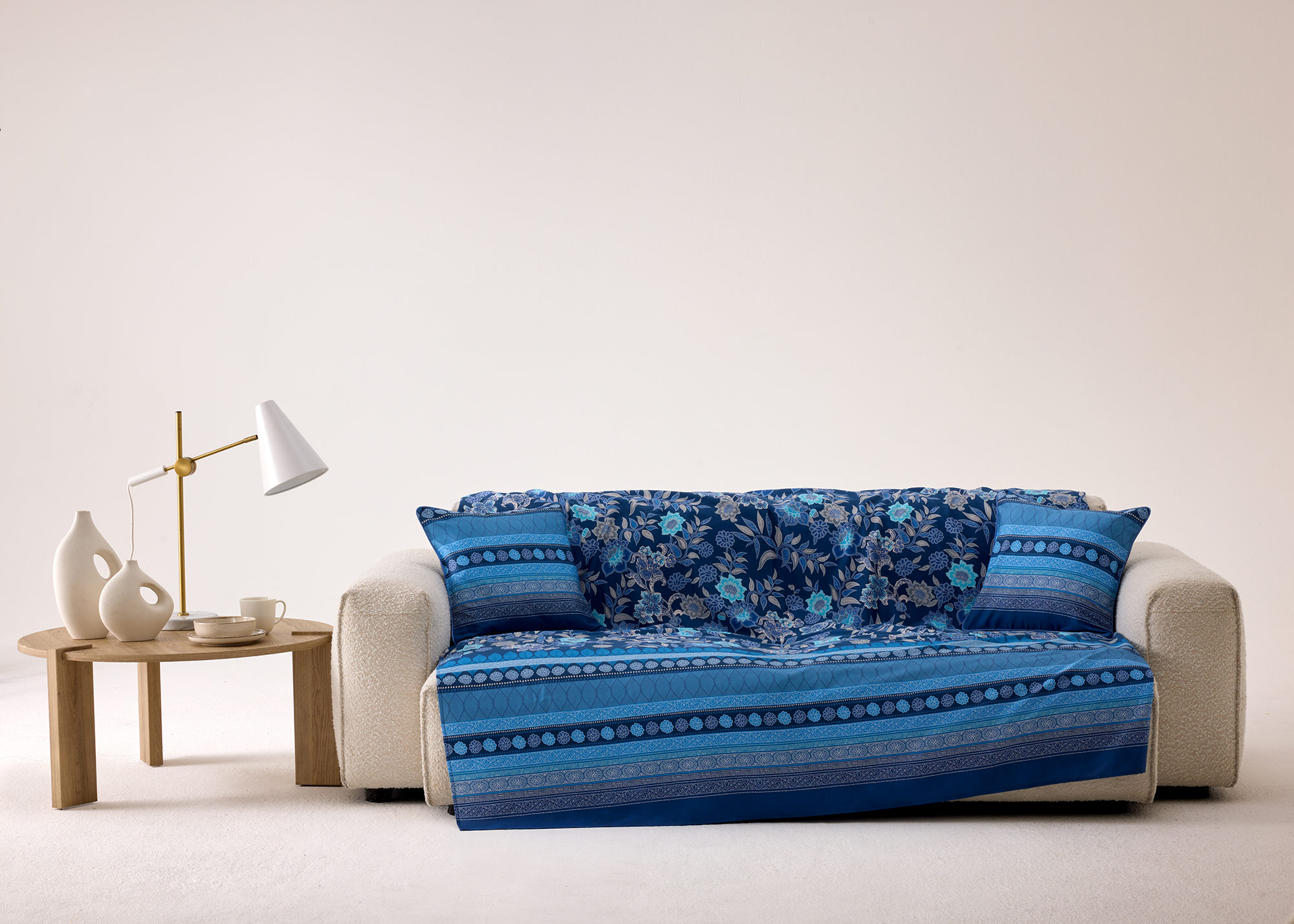 Aus reiner Baumwolle (57 Fäden pro cm²) hergestellt ist es in den Größen 180 x 270 cm, 270 x 270 cm sowie 350 x 270 cm erhältlich.