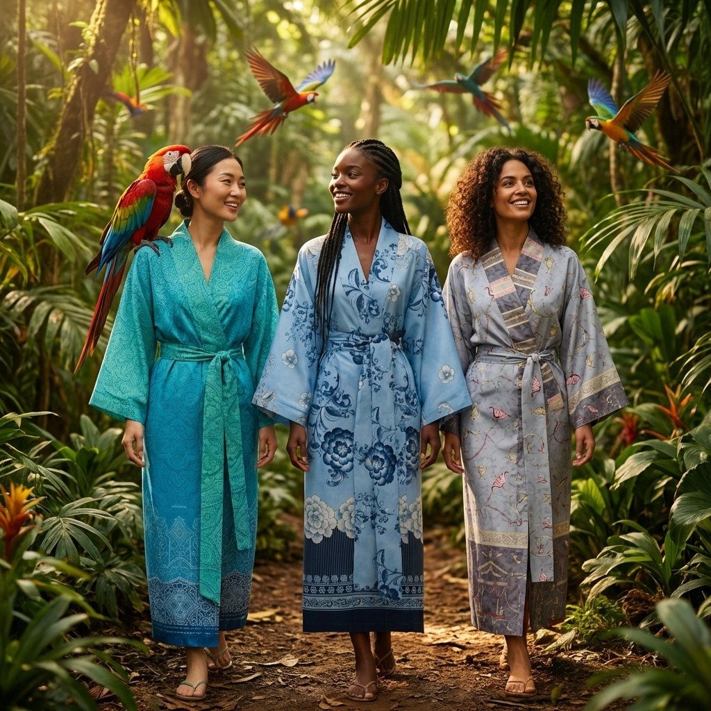 Bedruckt mit einem faszinierenden Motiv - Ausdruck südländischer Kreativität und Lebensfreude - weiß dieses traditionell japanische Kleidungsstück auch optisch zu überzeugen.