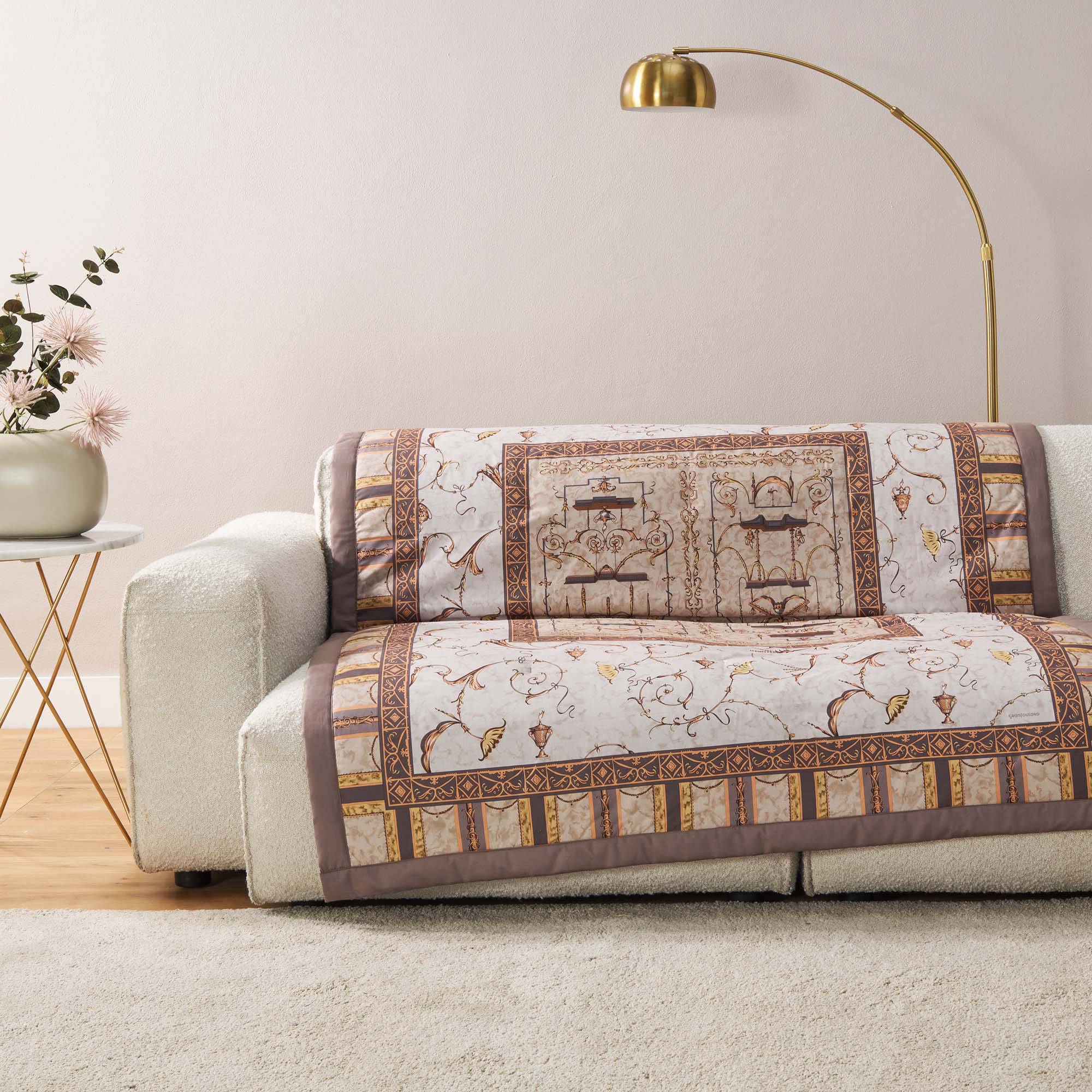 Das Design des Bassetti Oplontis Plaids ist von der antiken Stadt Oplontis in Italien inspiriert, die für ihre prächtigen römischen Villen und Gärten bekannt ist. Das Plaid verfügt über ein klassisches Design mit römischen Motiven und floralen Elementen. Die Verwendung von Gold- und Bronzeakzenten verleiht dem Plaid einen Hauch von Luxus und Eleganz.