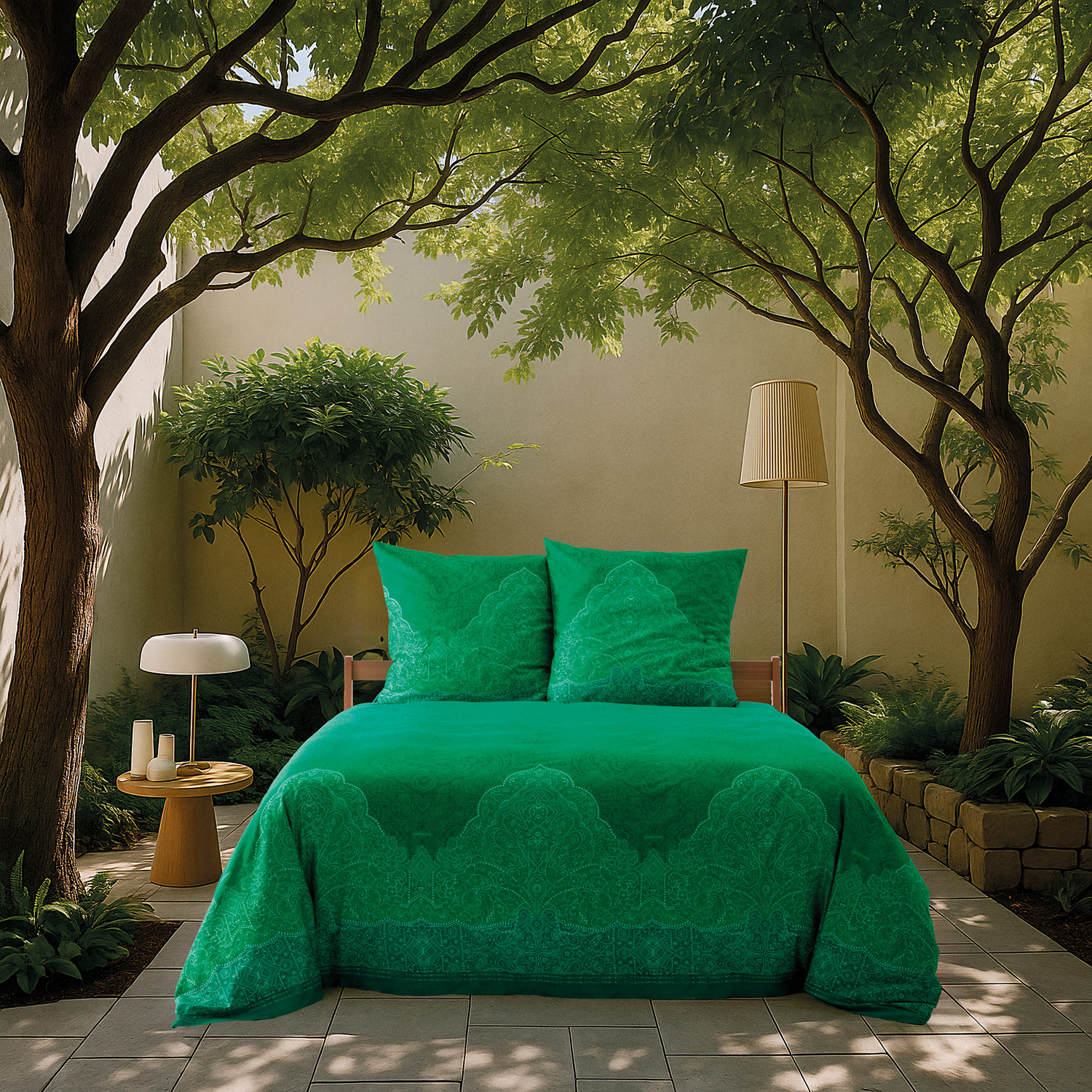 Inspiriert von den kleinen, orientalisierenden Pavillons, die sich malerisch im satten Grün der Hanbury-Gärten des historischen Palazzo Orengo in Ventimiglia erheben, präsentiert DOLCEACQUA V1 Grün eine kunstvolle und zugleich moderne Neuinterpretation des Paisley-Klassikers. Das Dessin verbindet traditionelle Ornamentik mit einer frischen, mediterranen Leichtigkeit. Sanfte, sonnendurchflutete und klar definierte Farbtöne verleihen dem Motiv eine besonders warme und einladende Atmosphäre.