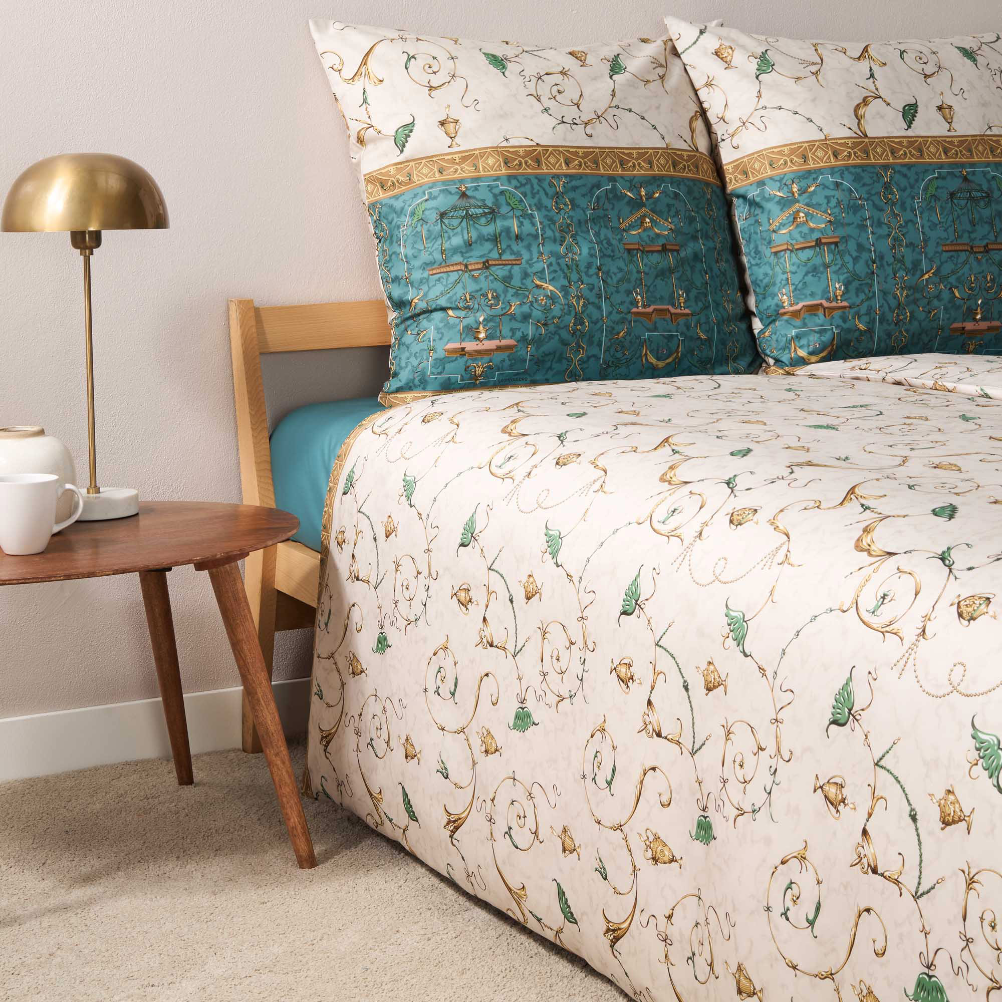 Das Design der Bassetti Bettwäsche OPLONTIS V2 Grün ist von der antiken Stadt Oplontis inspiriert, die für ihre prächtigen Villen und Gärten bekannt war.