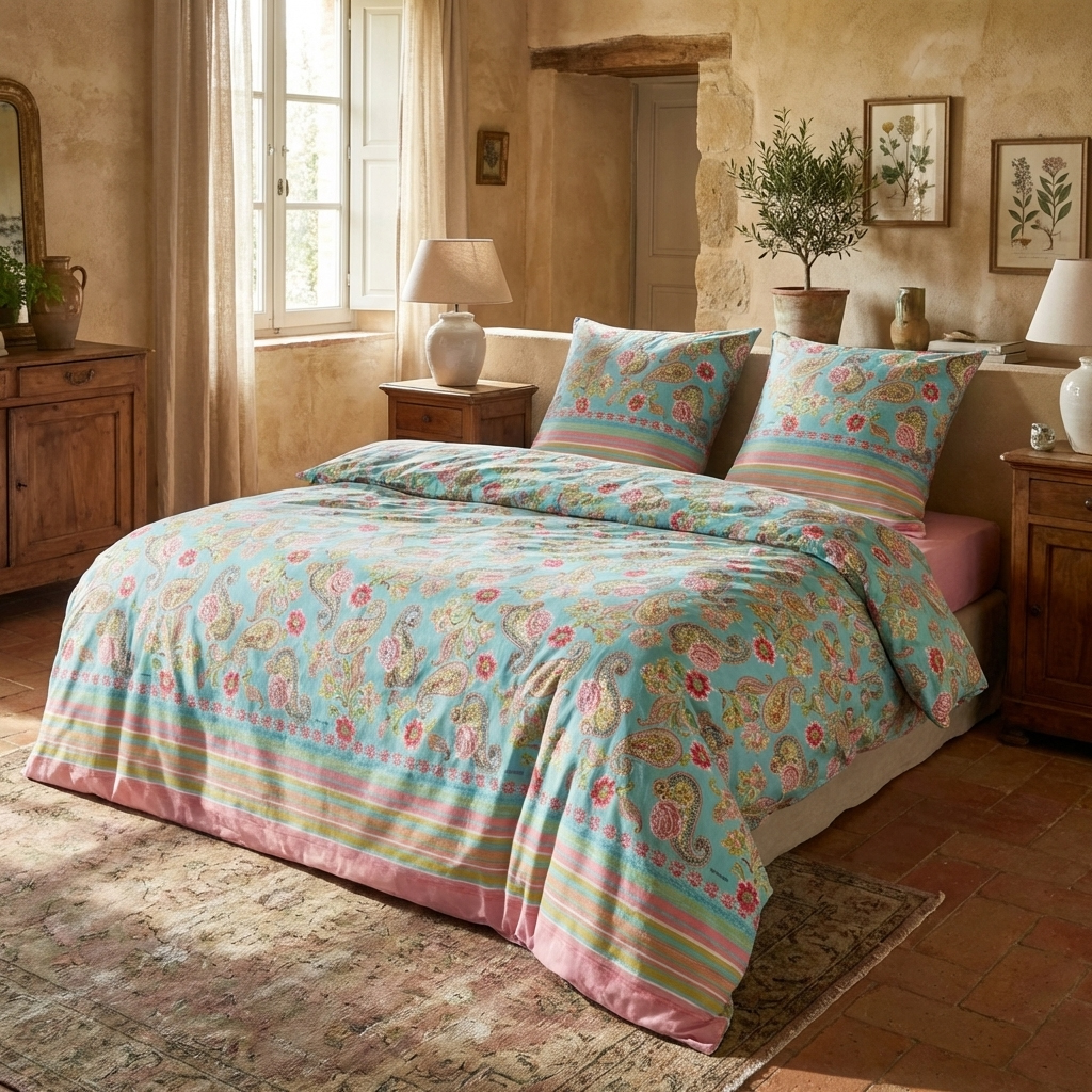 Bassetti Satin Bettwäsche Rapallo | T1 Türkis-Fuchsia