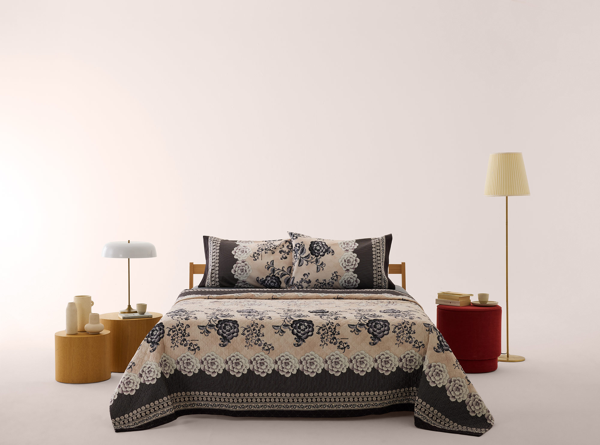 Hergestellt wurde die Tagesdecke in Italien, eine Waschmaschinenwäsche ist bis 40°C möglich.