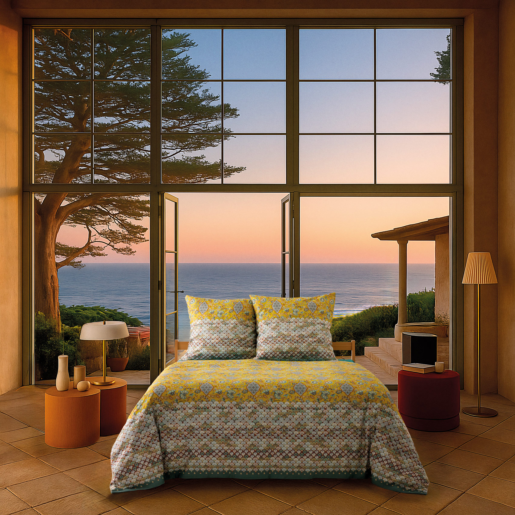 Hergestellt wurde die Tagesdecke in Italien, eine Waschmaschinenwäsche ist bis 40°C möglich.